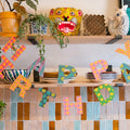 Add a burst of color to any birthday celebration with this handcrafted garland from East End Press, a design studio committed to sustainability and traditional craftsmanship. Measuring over 10 feet (3 meters), it can be displayed as one long banner or cut in two for smaller spaces.