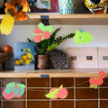 A festive parade of fruit, from juicy strawberries to tiny pineapples. This vibrant, hand-stitched garland features twelve unique fruit shapes strung along three meters of cotton thread—perfect for parties, kitchens, playrooms, or anywhere that could use a little cheer.