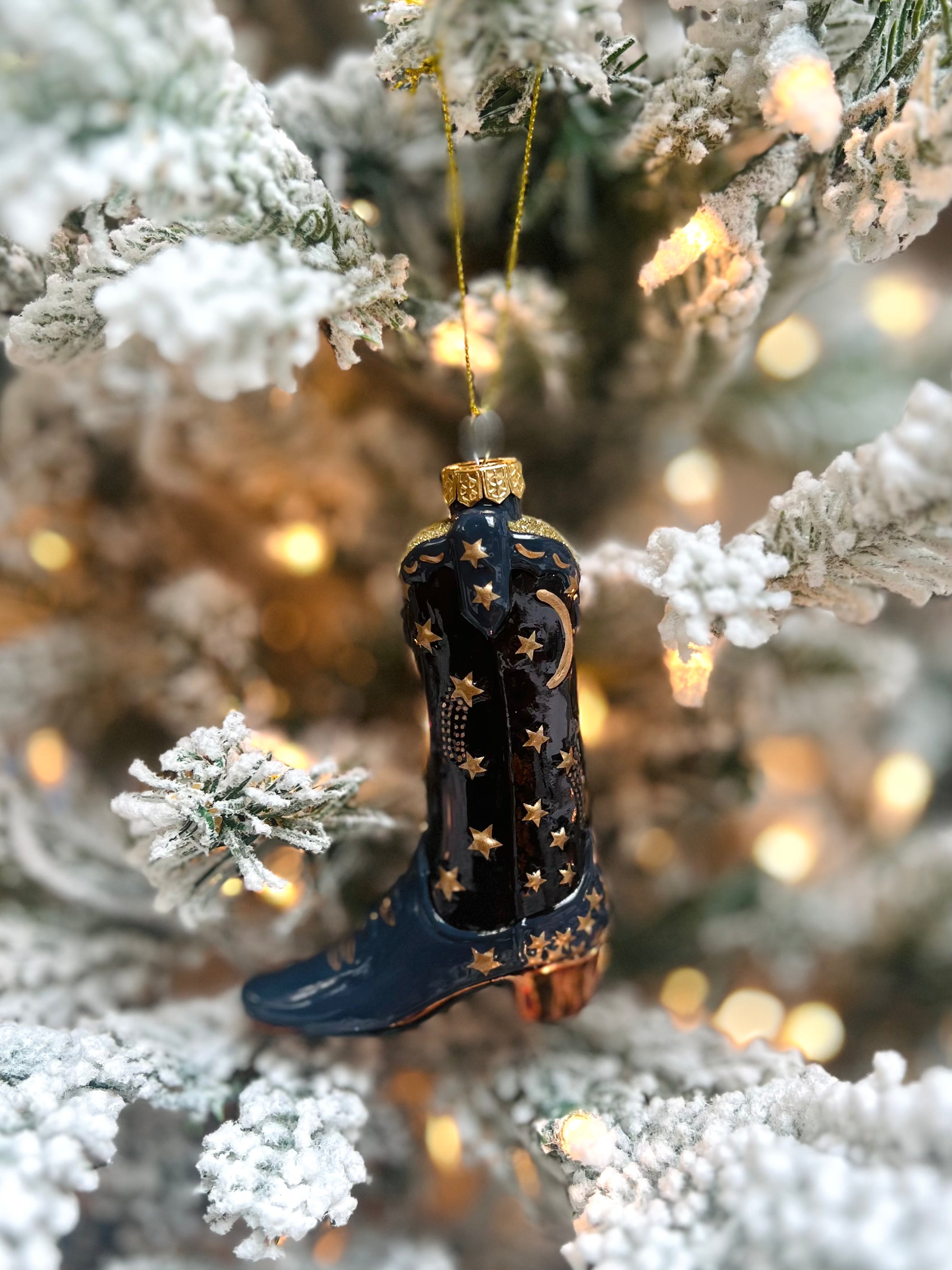 A boot with interstellar swagger: assorted in black or silver, both decked out with glittering starbursts. Retro western meets outer space for the ultimate space-cowboy mood. It’s equal parts honky-tonk and stardust.