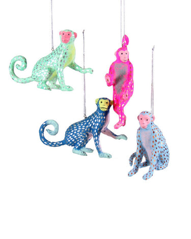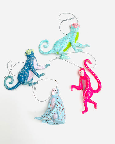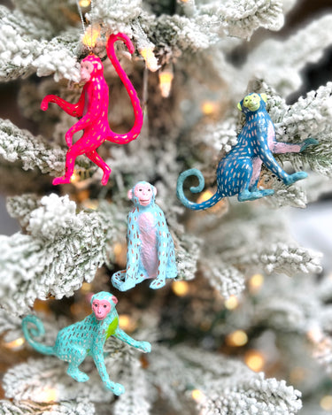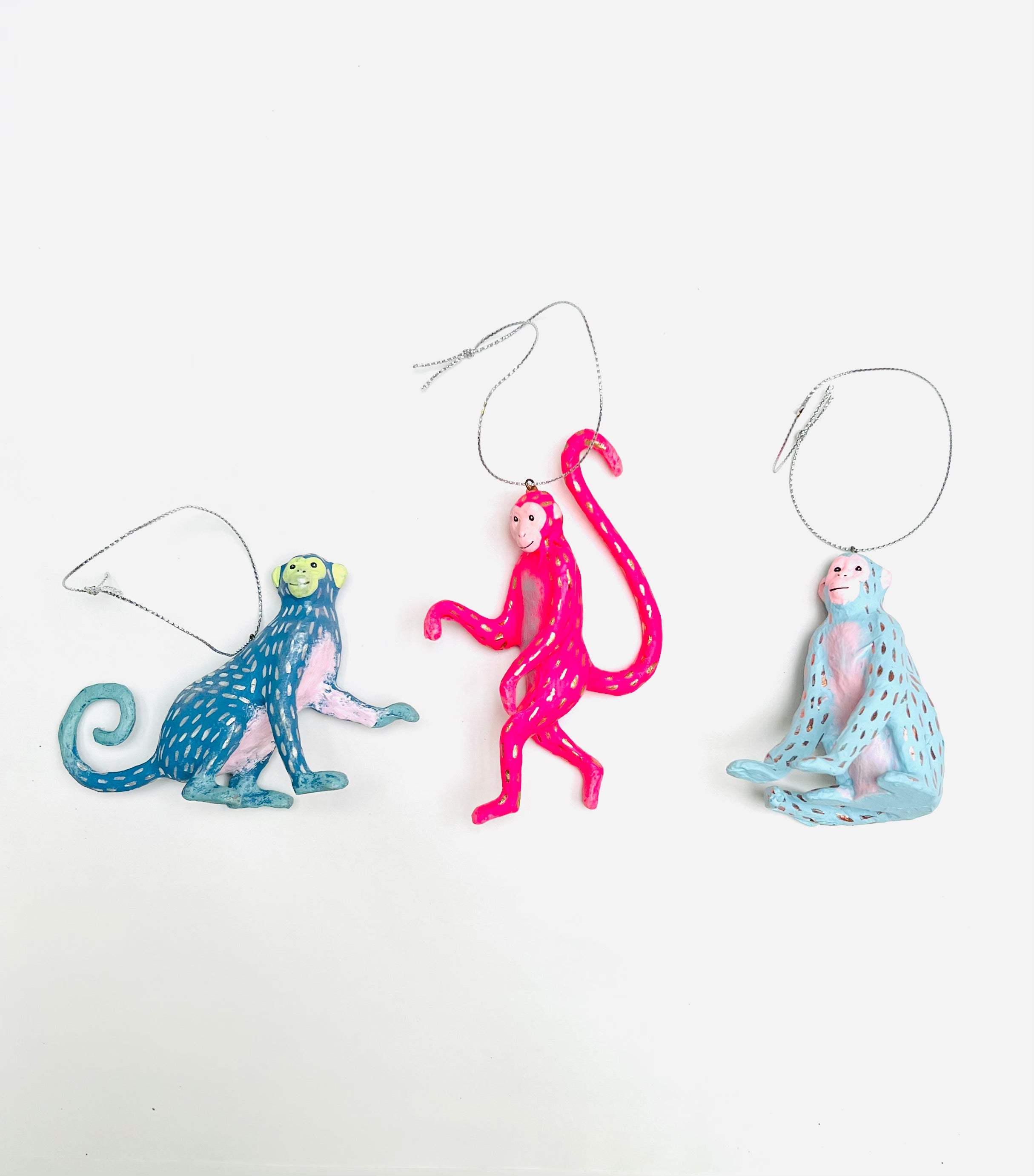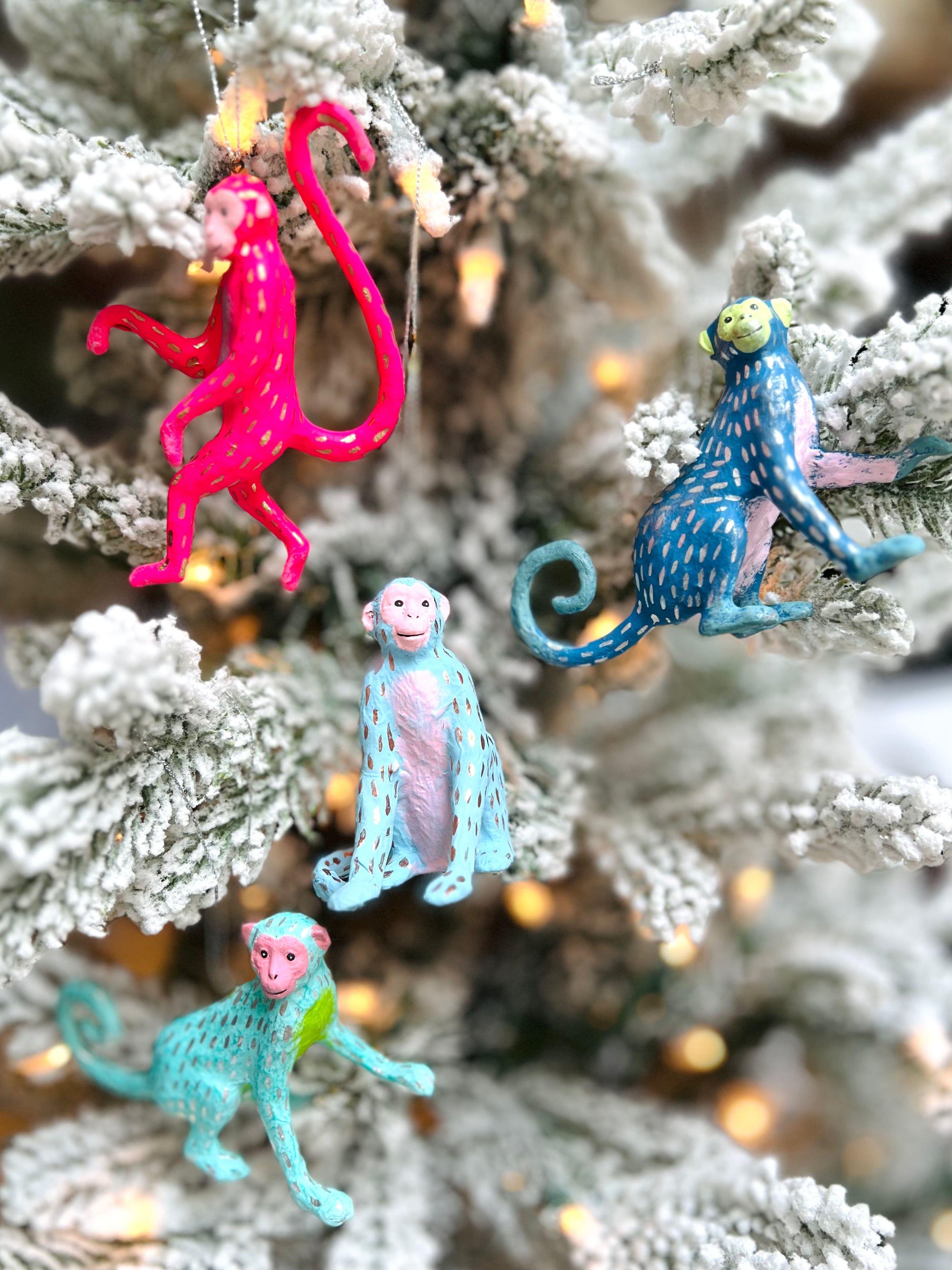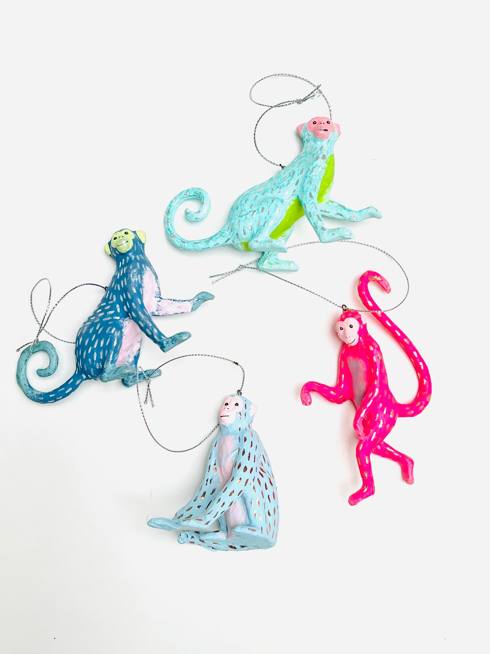Assorted in neon hues with silver spots, each paper mâché monkey strikes a different on-the-move pose. A curious party animal in the same wild family as our confetti moose.