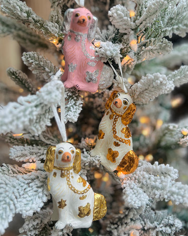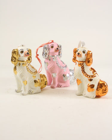 Three assorted spaniels—gold and cream, copper and cream, or pink and silver—each elegant and detailed. Beautiful and regal, they bring a touch of old-world charm to the tree. Choose your pup or let fate decide; either way, it’s pure class.