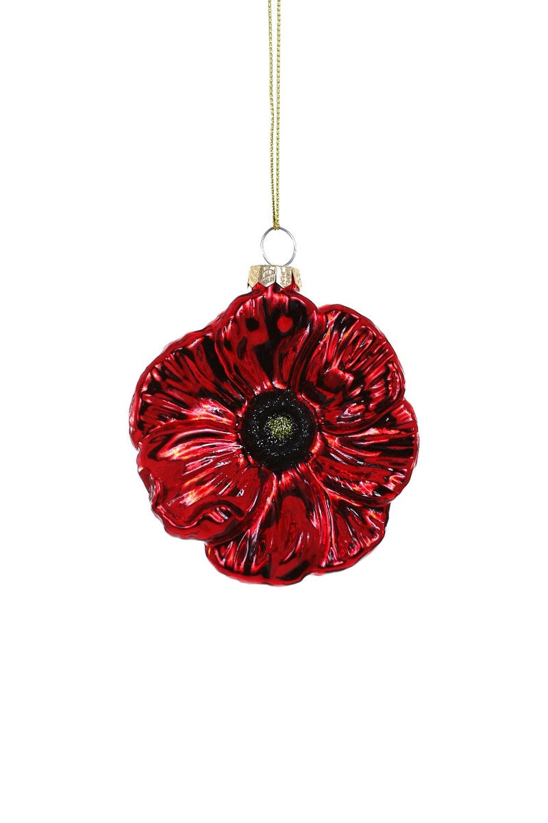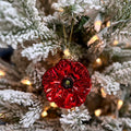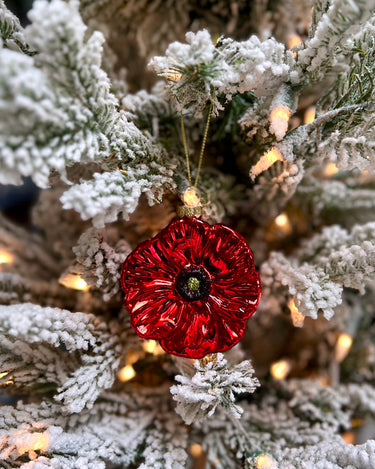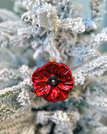 This bold poppy ornament brings a striking burst of color to the tree, its shiny red petals standing out beautifully against deep green branches. It’s a lovely choice for a floral-inspired holiday theme and an especially thoughtful gift for flower lovers. Red poppies are symbols of remembrance and enduring beauty, giving this ornament a meaningful presence among your holiday décor.