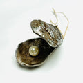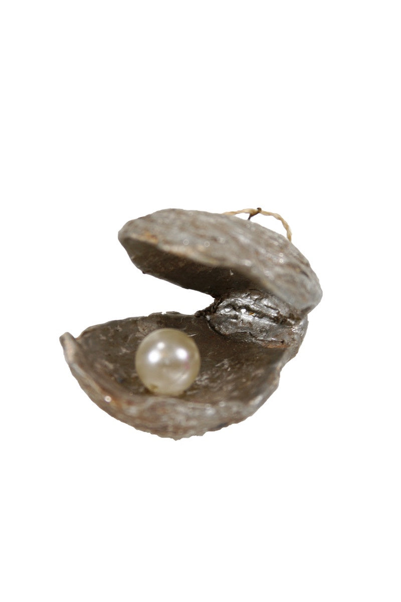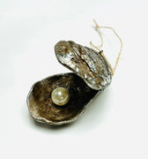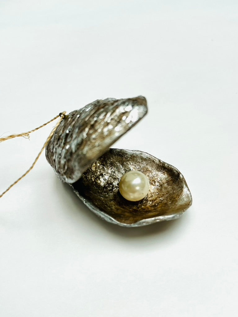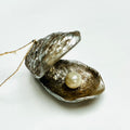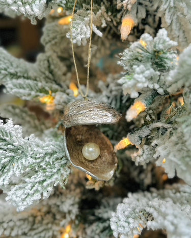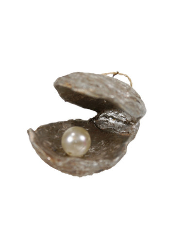 Paper-mâché oyster cracked open to reveal a tiny pearl inside. Handmade with vintage charm, it’s a seaside treasure turned ornament. A subtle way to bring coastal whimsy and shimmer to your tree.