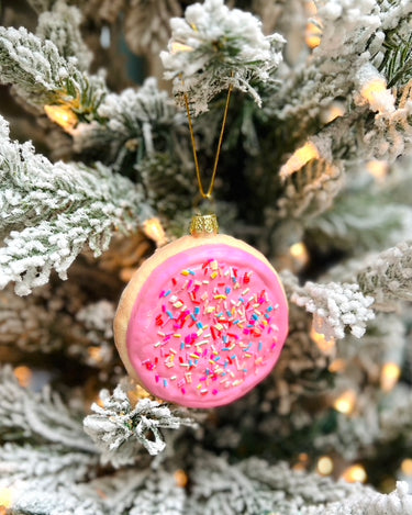 A classic grocery-store favorite turned holiday delight—soft, pillowy, and covered in pastel frosting and sprinkles. This nostalgic treat captures the sweetness of simple pleasures and the comfort of familiar flavors. Pair it with our Soft Sugar Cookie With A Bite Ornament for a matching moment of charm.