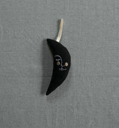 Charming free motion stitched moon ornament, made from natural linen, organic cotton stuffing and a handful of fragrant lavender. Stitched on the sewing machine with embroidery thread and metallic floss. Natural twill tape ribbon stitched to the top to hang from any sweet spot. Approx 4" in length 2" in width.