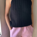 A fresh twist on the classic halter, the Claire Sweater Tank blends softness, structure, and simplicity in all the right ways. Designed with a flattering modern silhouette, it features wide ribbed knit texture, a high neckline, and the perfect length for tucking or leaving loose.