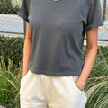 Featuring a relaxed, boxy silhouette that hits just right at the waist, the Darling Tee offers an easy fit with effortless vintage charm. Crafted from locally sourced, low-gauge cotton, it combines a light, airy feel with a structured yet soft touch. Gently distressed details and a 90s-inspired fade give it that perfectly broken-in look you’ll want to live in.