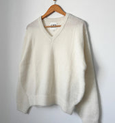 Cozy layering made simple in the James Mohair Sweater. Unlike your everyday V-neck, this sweater is made from an ultra cozy, mohair wool blend to keep you warm throughout the seasons. It features a timeless silhouette that’s slightly oversized and maintains a boxy fit for easy layering without any itchiness in sight. The perfect piece to elevate any look without compromising comfort
