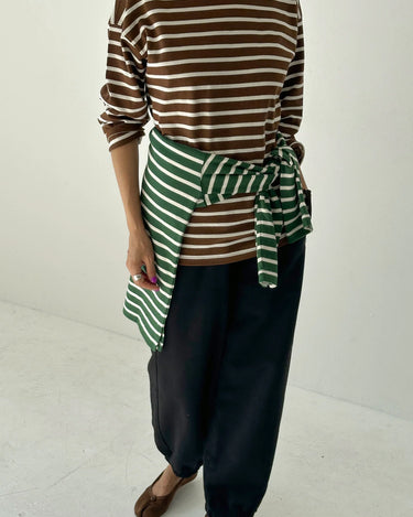 Designed with a round neckline and elongated silhouette, this top balances softness with subtle sophistication. Whether styled with tailored trousers, denim, or layered under a blazer, it’s a piece that transitions seamlessly between elevated and casual looks.