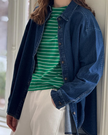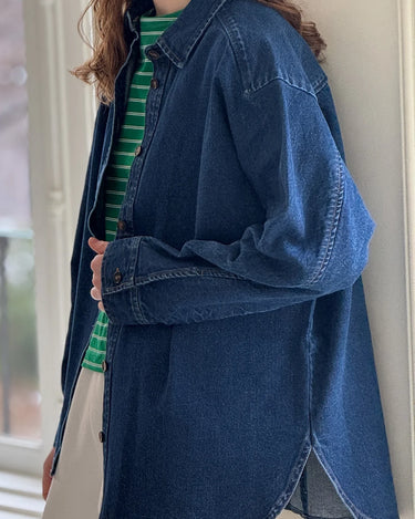 The classic denim shirt, reimagined. The Owen Shirt fits like the perfect vintage find—slightly oversized with a relaxed silhouette that’s ideal for layering. Wear it buttoned up as a shirt or open over your favorite tee or dress as a lightweight jacket.