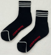 A cool, quarter-crew take on the classic Boyfriend Sock. The Girlfriend Sock features a contrast triple stripe, mesh top for breathability, and elastic arch support—a comfy, flattering fit that’s ideal for everyday wear.
