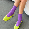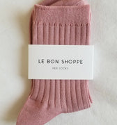 The Her Socks by Le Bon Shoppe are a favorite among customers young and old—and for good reason. They strike the perfect balance of softness and structure, with a ribbed knit that adds just the right amount of texture. The ideal height and fit for everyday wear, they look great with sneakers, boots, clogs, flats, Mary Janes, even strappy heels.