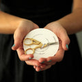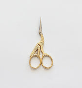 These heirloom-quality embroidery scissors feature a graceful crane shape with finely engraved detailing, gold-plated handles, and nickel-plated blades. Crafted in Italy from hard tempered steel, they’re perfect for embroidery, ribbon cutting, and other detailed work. The refined blades are extremely sharp and precise—ideal for textiles that deserve extra care.
