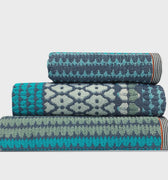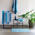 Soft, sculptural, and saturated in rich tones of teal, blue, and mossy green, the Eastbourne Bath Towel brings a sense of calm geometry to your bathroom. Margo Selby’s signature textile design is expressed here in a bold jacquard weave with a plush handfeel and full reversibility—like having two towels in one.