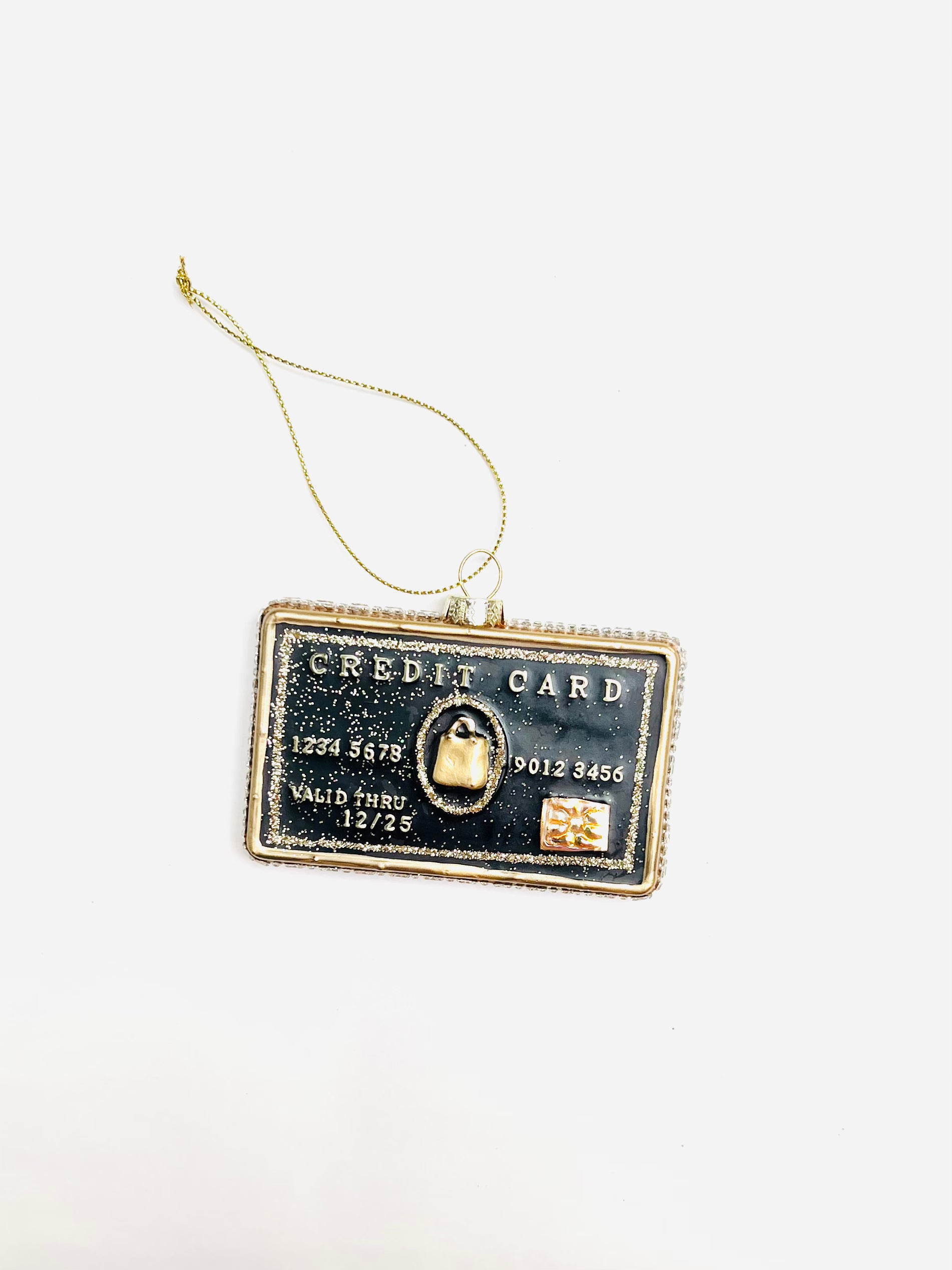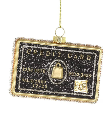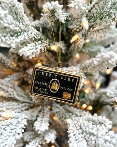 A glittering nod to the art of indulgence—black, gold, and trimmed with rhinestones like a miniature VIP pass. Equal parts glamorous and tongue-in-cheek, it celebrates the thrill of shopping season in true holiday style. Hang it proudly and charge it to good cheer.