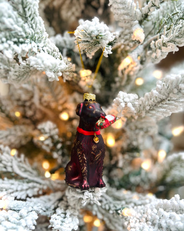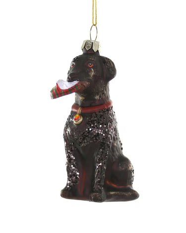 This mischievous black lab has snatched someone’s slipper and definitely earned a spot on the naughty list. Still, with that sweet face and proud little stance, it’s hard not to forgive him instantly. If you know someone with a dog like this, this ornament makes a perfect gift—especially paired with a fresh pair of slippers.