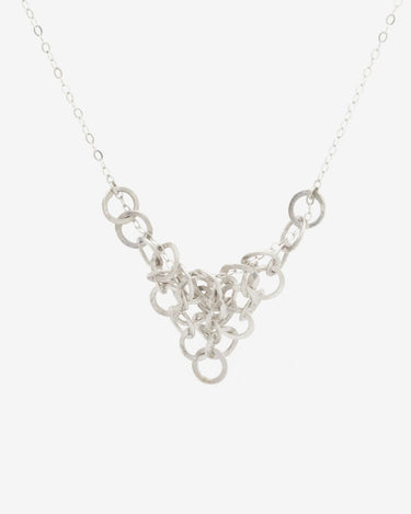 A bold nod to medieval craftsmanship, the Chainmail Necklace reimagines the strength and beauty of armor as a wearable work of art. A swatch of hand-forged chainmail is carefully threaded and suspended from a sleek, medium-weight 23" cable chain—a striking balance of grit and elegance.