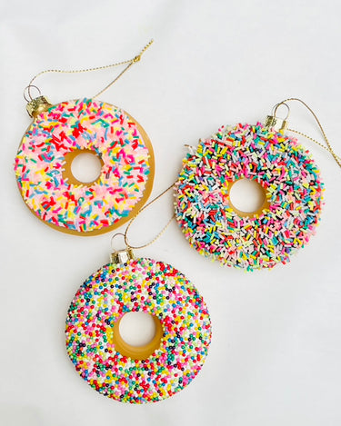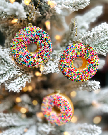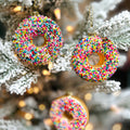 Assorted donuts in pink glaze, chocolate glaze, or classic frosted, each with rainbow sprinkles. A diner favorite and a very merry guilty pleasure.