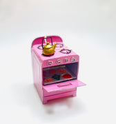 An adorable vintage-style pink stove, topped with a gold teapot and Christmas cookies baking inside. A cozy, retro treat for bakers and holiday dreamers alike. Warm nostalgia that smells like sugar and cinnamon.