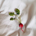 Fresh from the garden and full of playful charm, the Red Radish Brooch transforms a humble vegetable into a vibrant work of wearable art. Hand-embroidered with shimmering beads and sequins, this delightful piece is perfect for gardeners, food lovers, and anyone who appreciates a bit of whimsy in their accessories.