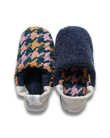 Reversible Slippers Hound Check and Boa Pile - Blue
