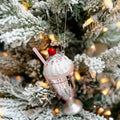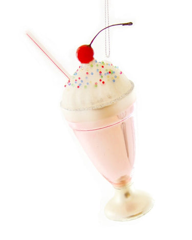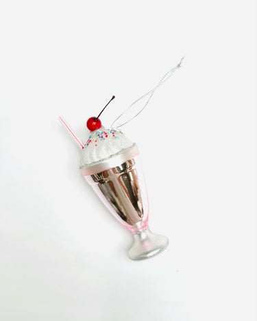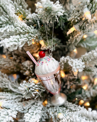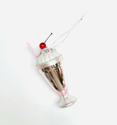 Step back into a 1950s diner the moment you hang this on your tree. This tall, frosty glass milkshake comes topped with fluffy whipped cream, rainbow sprinkles, and a perfect bright-red cherry—because some classics never go out of style.