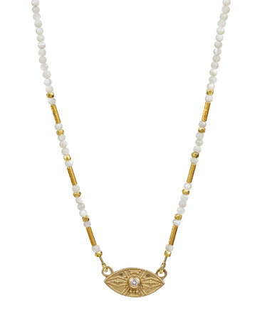Inspired by intuition and third-eye wisdom, the Ajna Beaded Necklace makes for meaningful adornment. A diamond-set Ajna charm is centered on a strand of micro-faceted gemstone beads, blending mysticism and beauty in a stylish design. Made with love in Mill Valley, California.