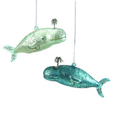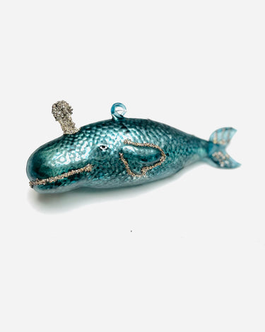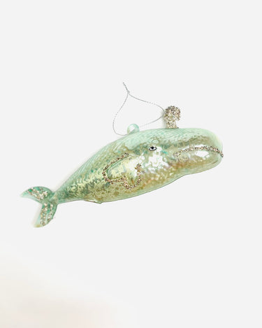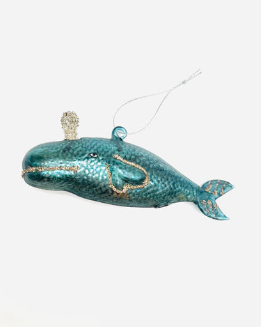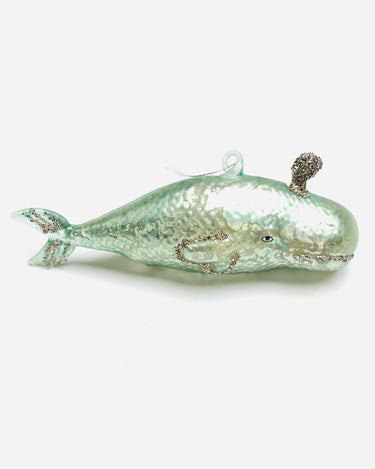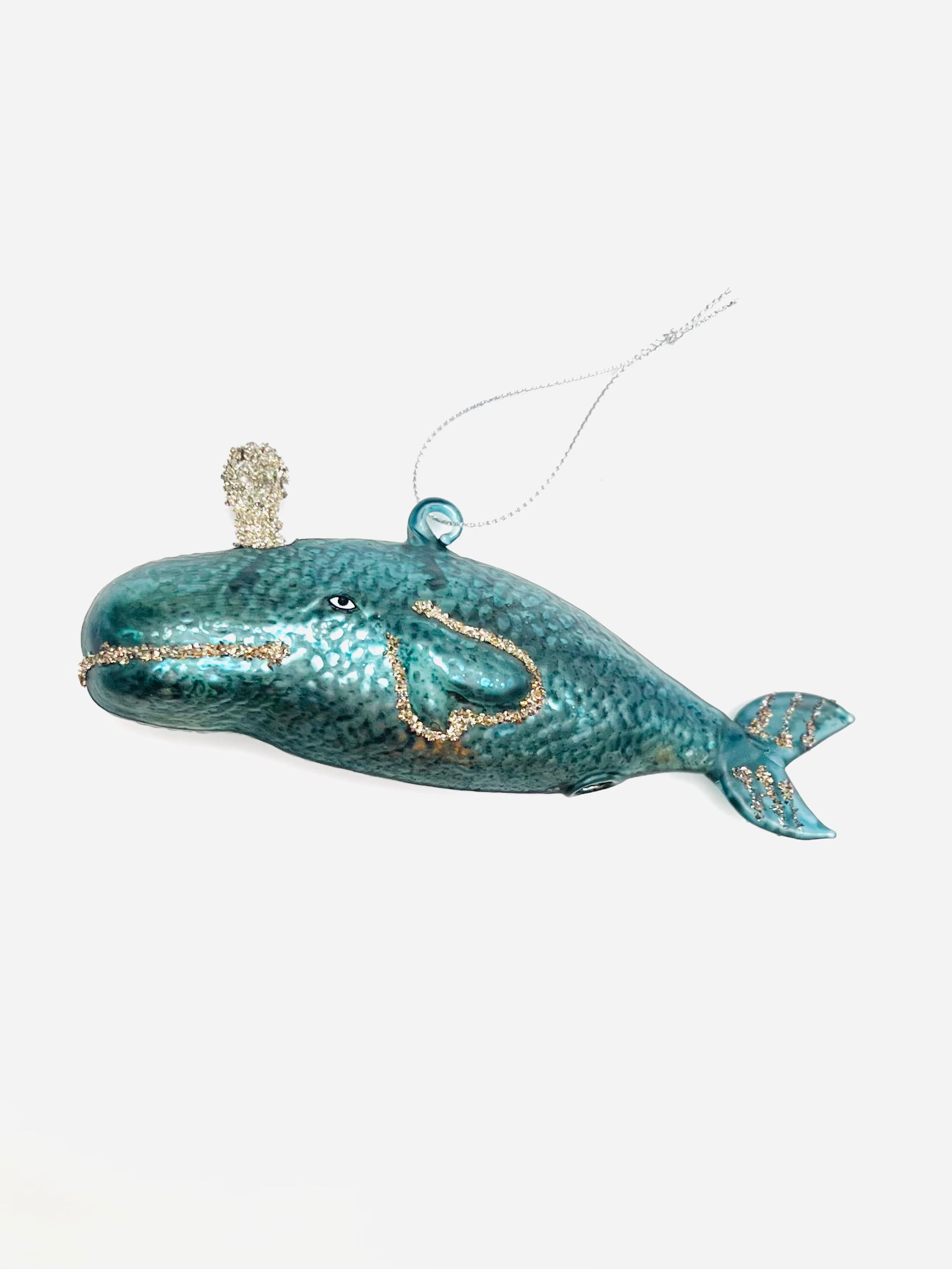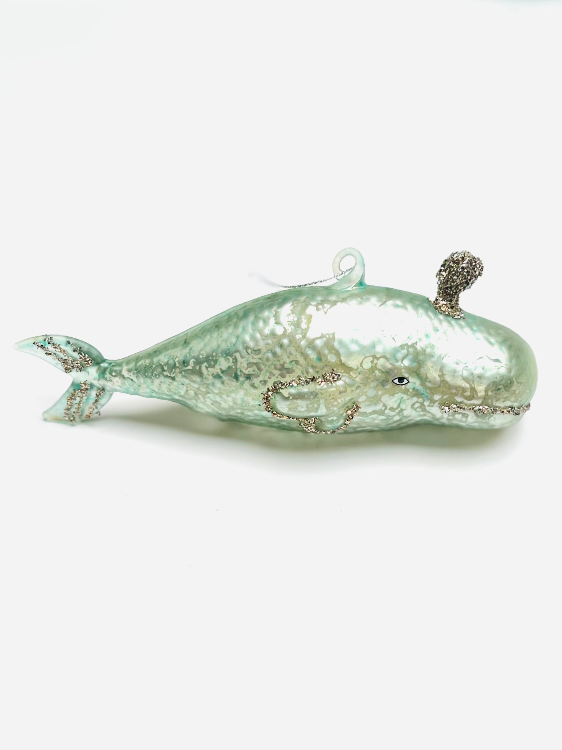 Gliding with quiet majesty, this glass whale feels plucked from a vintage storybook. Finished with a shimmering silver-glitter spout, it comes assorted in light blue or dark blue—two timeless shades for ocean dreamers and coastal holiday trees.